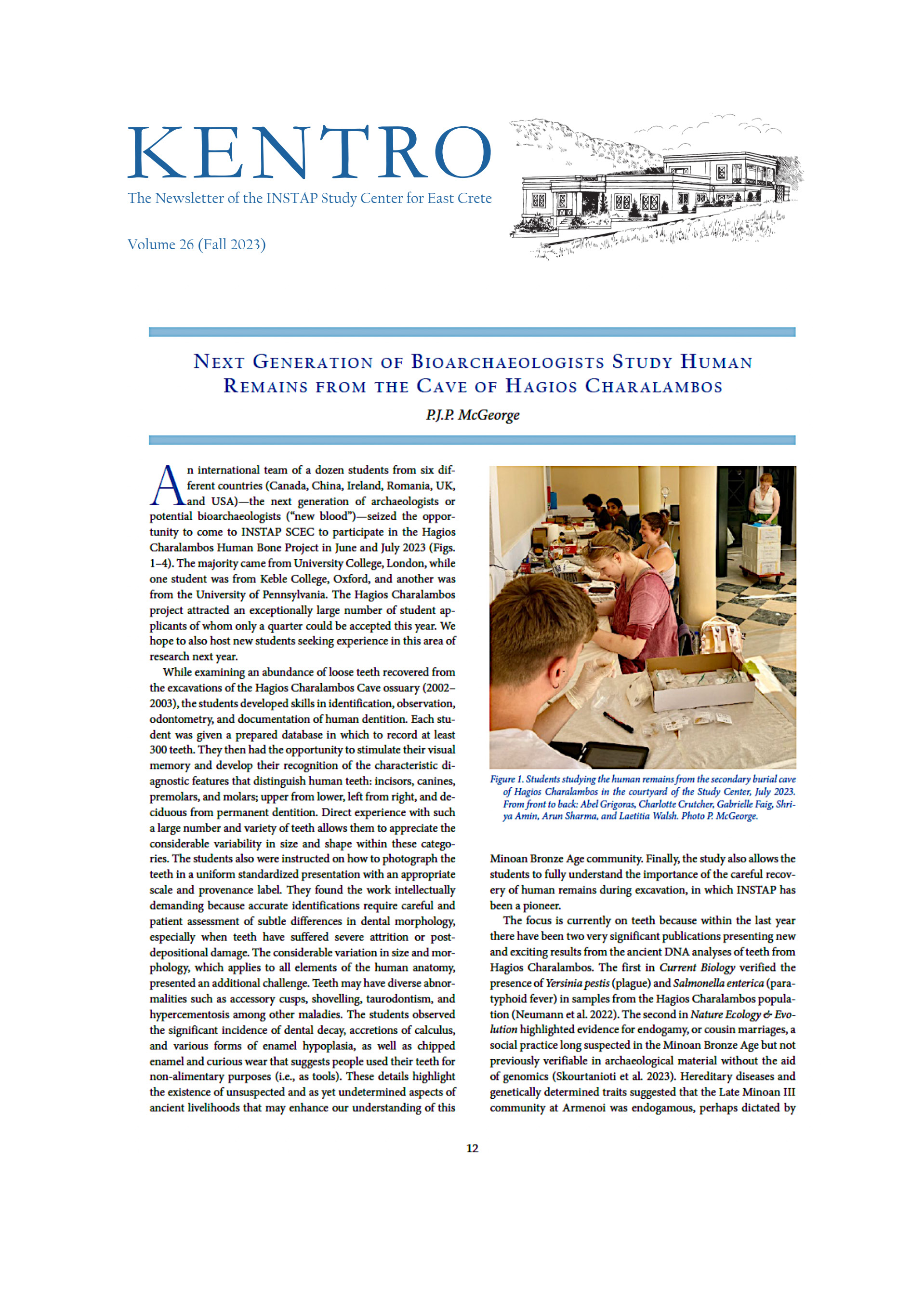 The Newsletter of the INSTAP Study Center of East Crete - Volume 26 (Fall 2023)